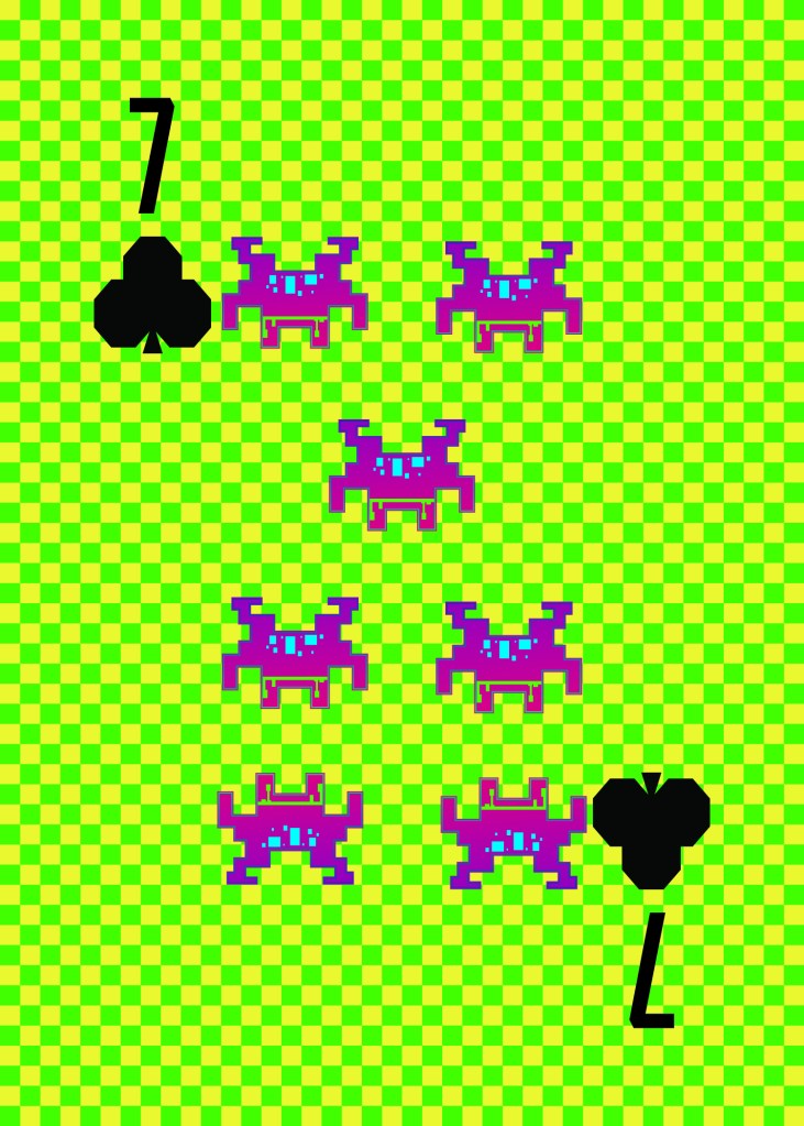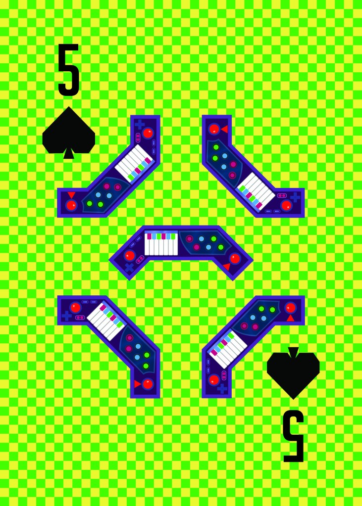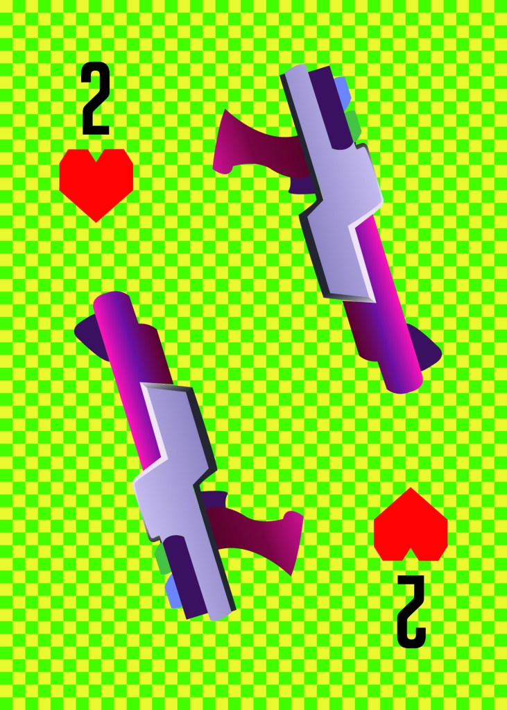 This is the largest design project I did in high school. I designed a deck of cards based off of the League of Legends “Arcade” skin line. Furthermore, I designed and produced a deck box (but not the cards themselves, as our teacher wasn’t trying to torture us by having us cut out 54 individual playing cards). The card backs and box had a similar checkered background but were purple and pink instead. Though modeled after the assets in League of Legends, I created each of the assets using Adobe Illustrator.